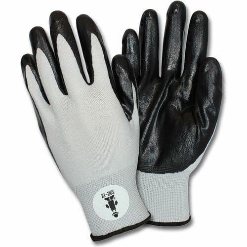 Gloves, Indus., 13GaugeNylon, Nitrile, Knit, XXL, 2/Pair, 1DZ, BK/GY
