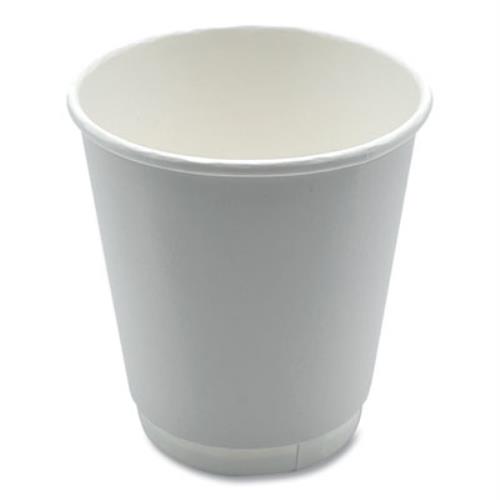 Paper Hot Cups, Double-Walled, 8 oz, White, 500/Carton