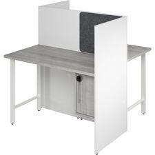 Cube Desks, w/Cabinet/Tackboard, 2-Person, 59″x30″x48″, White