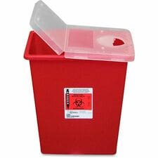 Biohazard Sharps Container W/Hinged Lid/Rotor, 8 Gal., Red