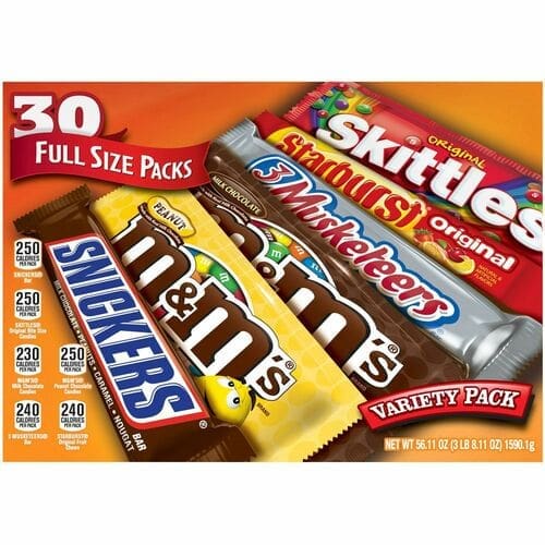 Candy, Full-Size, Snickers/M&Ms/Starburst/Skittles, 30/CT quantity