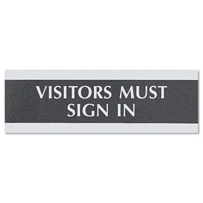 Century Series Office Sign, Visitors Must Sign In, 9 X 3, Black/silver, Open Market, (3-4 week delivery)