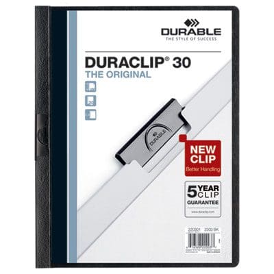 DuraClip Report Cover, Clip Fastener, 8.5 x 11, Holds 30 Sheets, Clear/Black, 25/Box, (4-7 day delivery)