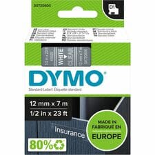 Label Tape, f/DYMO Labelmakers, 1/2″x23′, White/Clear, Open Market, (3-4 week delivery)