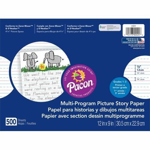 Picture Story Paper, 1/2″ Ruled, 12″x9″, 500 Sheets/RM, White, (4-7 day delivery)