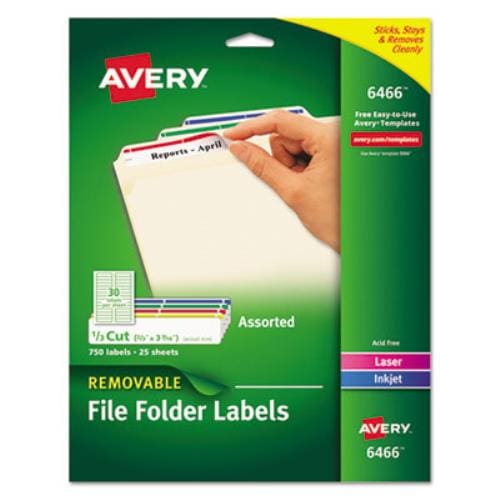 REMOVABLE FILE FOLDER LABELS WITH SURE FEED TECHNOLOGY, 0.66 X 3.44, WHITE, 30/SHEET, 25 SHEETS/PACK, (4-7 day delivery)