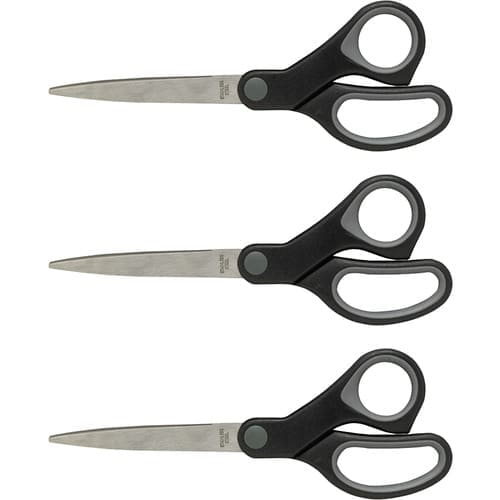 Straight Scissors, Rubber Handles, 7" Straight, 3/BD, Black quantity